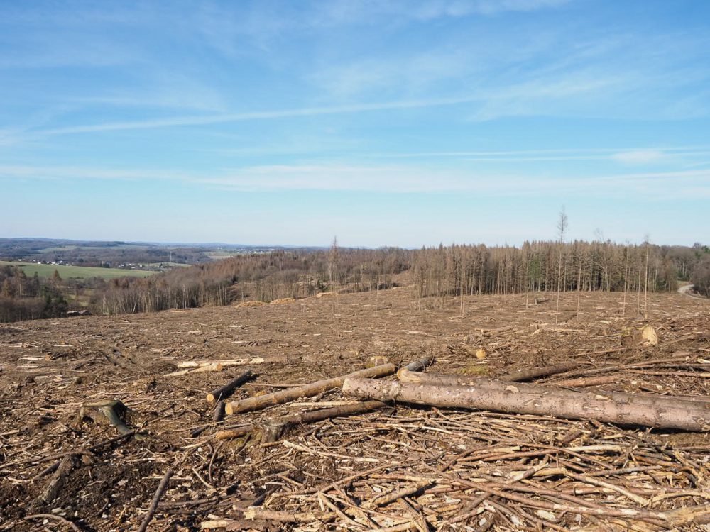 Egal ob Privat, Staats oder Kommunalwald die Flächen mit den abgestorbenen Fichten werden in der Regel kahlgeschlagen. Obwohl die ökologischen Folgen wie gesagt immens sind, werden solche Abräumaktionen nicht als vom Gesetz verbotenen Kahlschläge gesehen, da es sich ja um tote Bäume handelt.