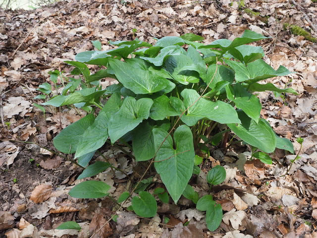 Gegen 10 verabschieden wir uns und ich setze meine Wanderung fort. Der Frühling hat noch mal so richtig an Fahrt aufgenommen. Mönchsgrasmücken singen, Schlehen und Kirschen beginnen zu blühen, die frischen Blätter des Aronstabs sind schon kräfig gewachsen und junge Ahorne tragen bereits Blätter.