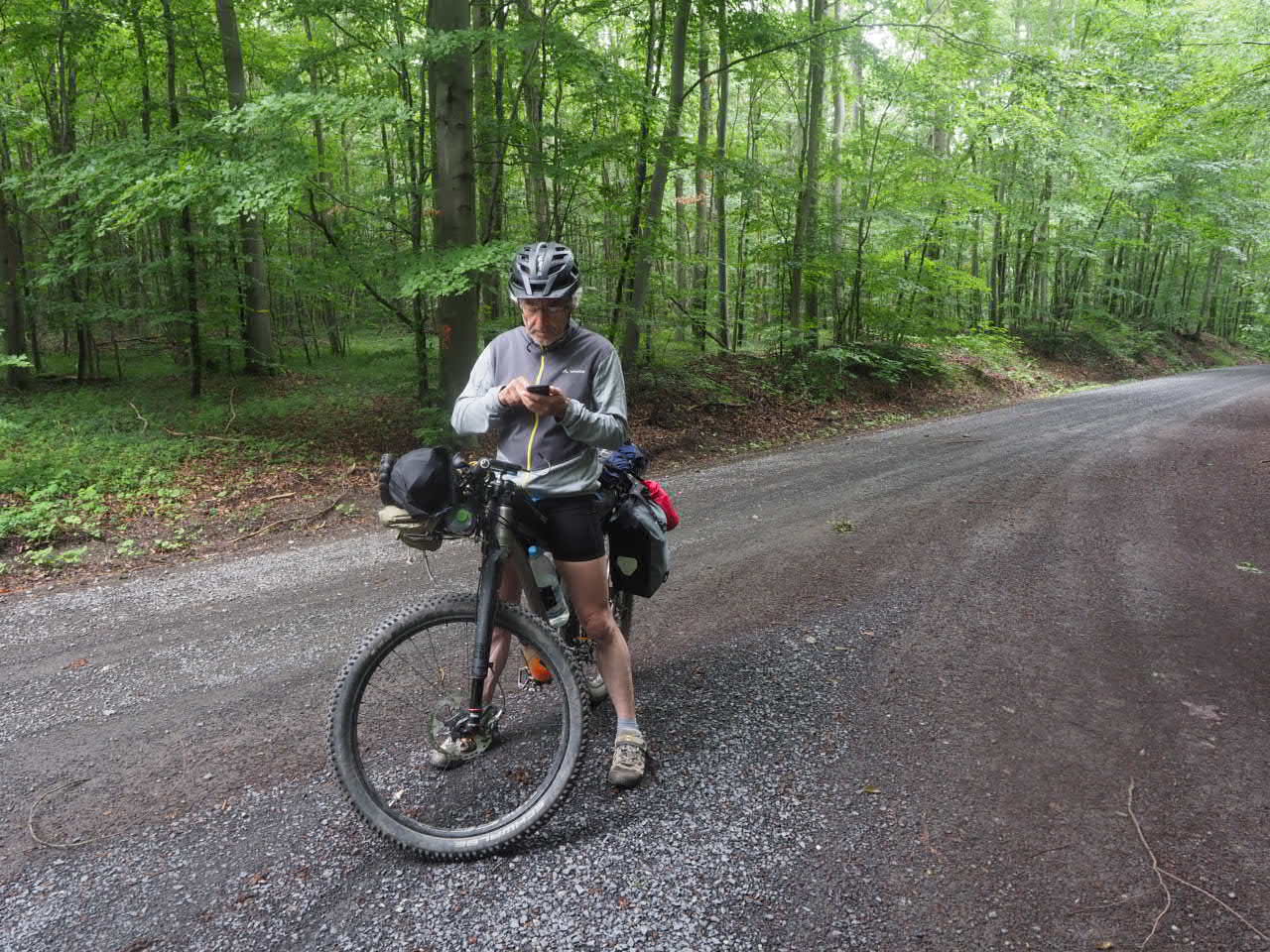 An einer Kreuzung komme ich mit Martin ins Gespräch, der gerade auf einer 1- wöchigen Mountainbiketour ist, bei der er sein Gepäck auf das Notwendigste beschränkt hat, sogenanntes Bikepacking. Er zeigt sich ziemlich beeindruckt von meiner Tour und ich hoffe, dass ich ihm einige Anregungen geben konnte!
