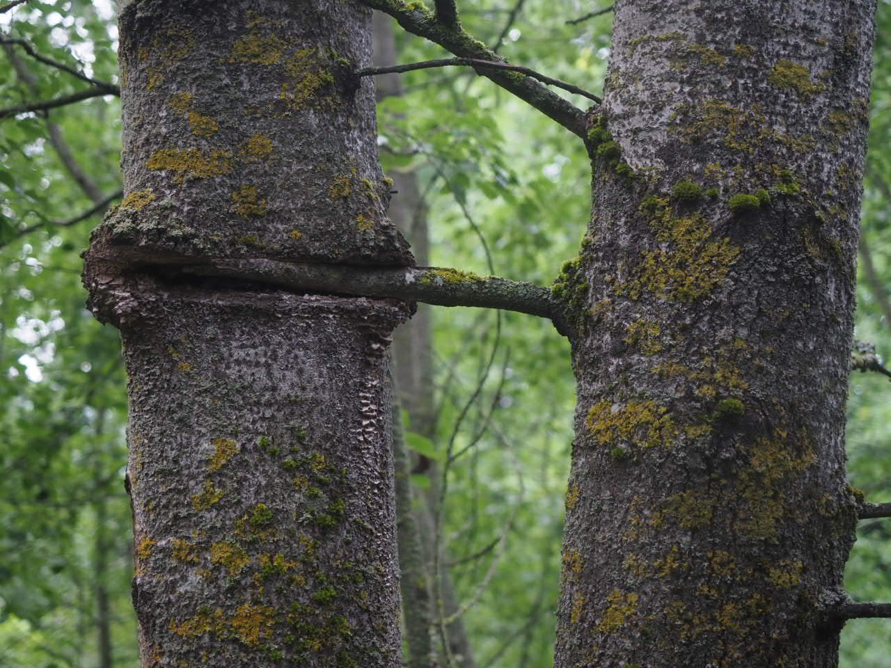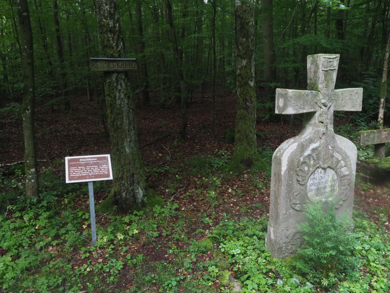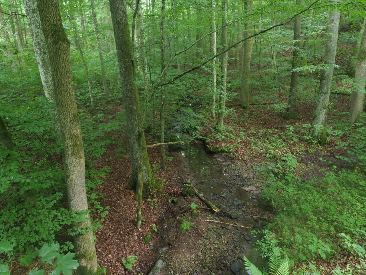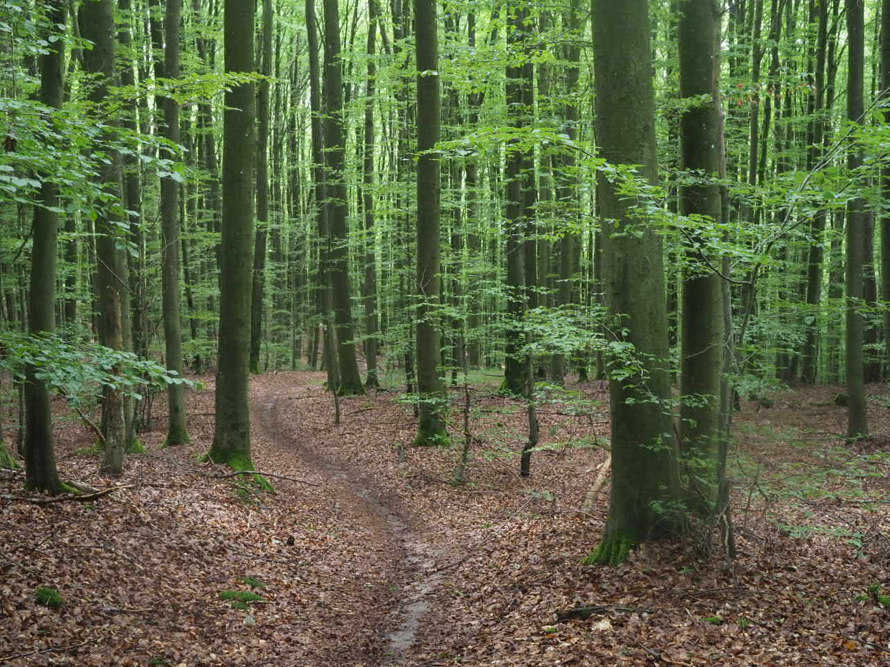 Es regnet abends nur wenig und früh am Morgen bin ich wieder unterwegs, durch die weiten, alten Laubwälder des Steigerwalds. Lediglich in Oberschleichach und Geusfeld verlasse ich kurz den Wald. Obwohl ich ja schon eine ganze Zeit durch Bayern wandere, ist dies das erste Mal, dass ich durch ein so großes, fast reines Laubwaldgebiet wandere. Zwar ist die Buche bestimmend, aber es gibt auch viele Eichen und zahlreiche Mischbaumarten von der Linde über die Esche, Ahorne, Aspen und Birken sorgen für einen sehr abwechslungsreichen Waldaufbau. Obwohl hier offensichtlich schon seit langem naturgemäß gewirtschaftet wird, machen die meisten Bestände einen ziemlich dichten, geschlossenen Eindruck, was gerade im Vergleich zu dem Rotenhanschen Wald gestern auffällig ist. Dennoch gibt es auch hier eine ganze Menge Kronenschäden, meist an Randbäumen, aber nicht ausschließlich. Auch Eichen sind betroffen. Ich bin schon jetzt schwer vom Steigerwald begeistert, den ich in den nächsten Tagen noch intensiver kennen lernen werde!