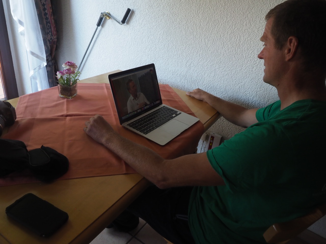 Kurz nach 13 Uhr erreiche ich Ebrach, wo ich im Gästehaus Kaiser unterkomme. Glüclklicherweise bin ich schon recht früh da, weil der Technikcheck für die SWR- Sendung „Kaffee oder Tee“ vorverlegt wurde. Dabei komme ich dann ganz schön ins Schwitzen, weil Microsoft Teams zunächst nicht funktioniert, und wir dann zu Skype wechseln. Eine Stunde später gibt es dann noch eine kurze Probe mit dem Moderator Martin Seidler.