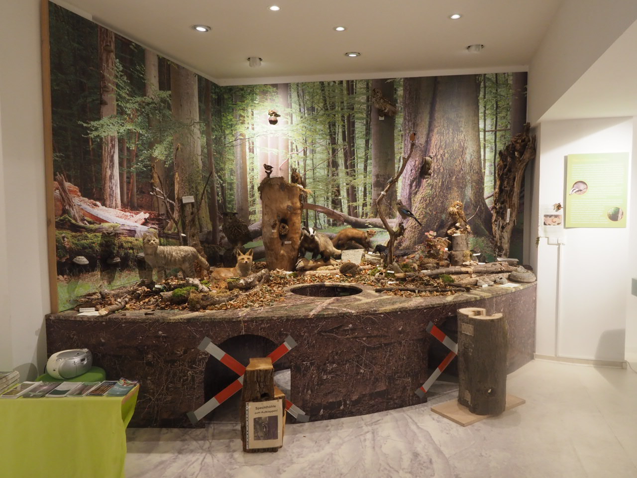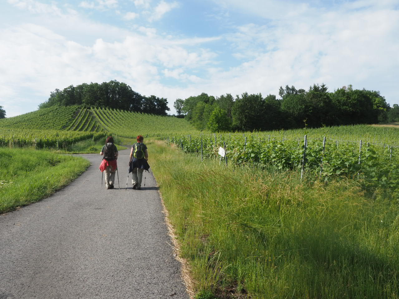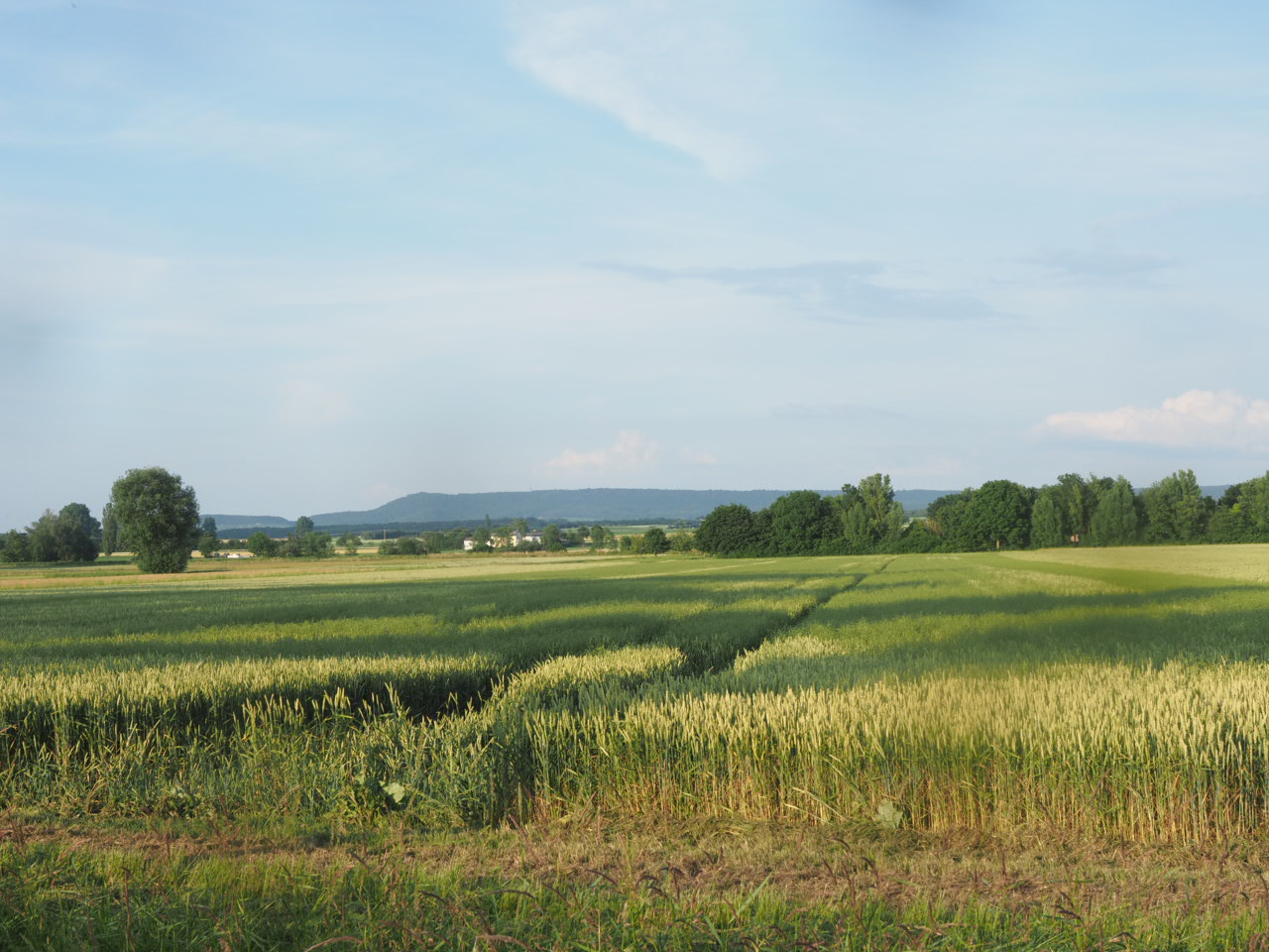 Georg könnte mir noch Tausend Sachen zeigen und ich ihm ewig zuhören, aber schließlich heißt es Abschied nehmen und ich wandere mit Ulla Reck, einer Tierärztin, die jetzt im Naturschutz arbeitet, und den gestrigen Termin organisiert hat, sowie ihrer Freundin Kim Weber weiter. Doch zuvor schauen wir uns kurz noch in Ebrach die sehr sehenswerte Ausstellung „Wilde Buchenwälder“ an. Noch einmal durchqeren wir den Steigerwald in Richtung Norden und gelangen schließlich bei Prüssberg an seinen Rand. Erstaunlich wie hier der Wald in Weinberge übergeht.
