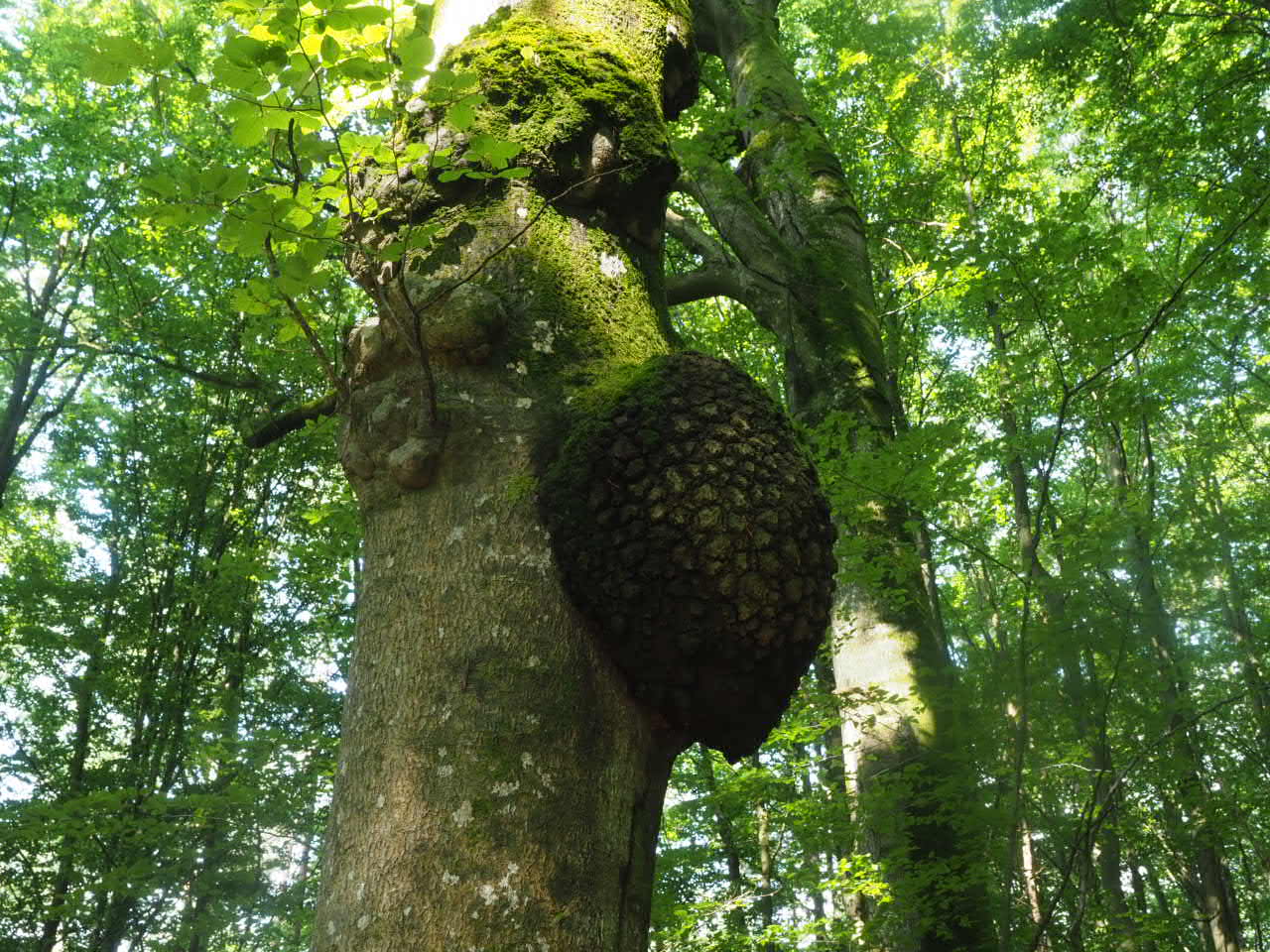 Der Steigerwald ist standörtlich sehr vielfältig, so gelangen wir auch in der Brunnstube von eher reicheren Standorten, in denen sich Eichen, Hainbuchen, Ahorne und Elsbeeren zu den Buchen gesellen, zu eher ärmeren Bereichen, dem typischen Hainsimsen- Buchenwald. In dem etwa 270 Jahre alten Bestand sind keine Bewirtschaftungsspuren mehr feststellbar und der Charakter des Waldes kommt einem Urwald, wie es ihn beispielsweise in den Karpaten noch gibt, sehr nah. Da macht es auch nichts, wenn ein Tornado wie 2012 geschehen, einige mächtige Bäume fällt. Im Gegenteil, so ein Ereignis sorgt für mehr Vielfalt! Erstaunlich ist auch die hohe Holzqualität der Baumstämme und das alles ohne die Pflege des Försters…