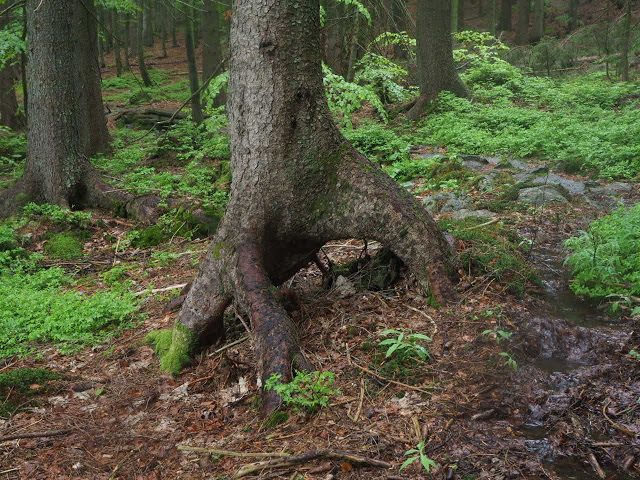 Die Fichte war auf einem Baumstumpf gekeimt